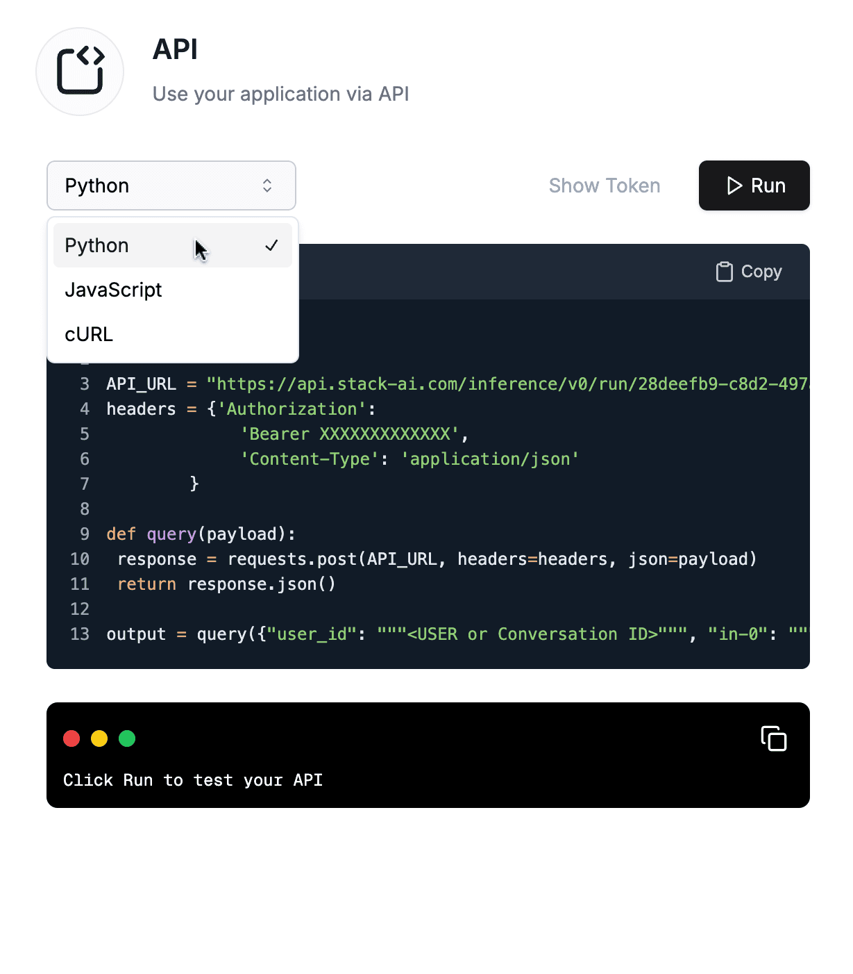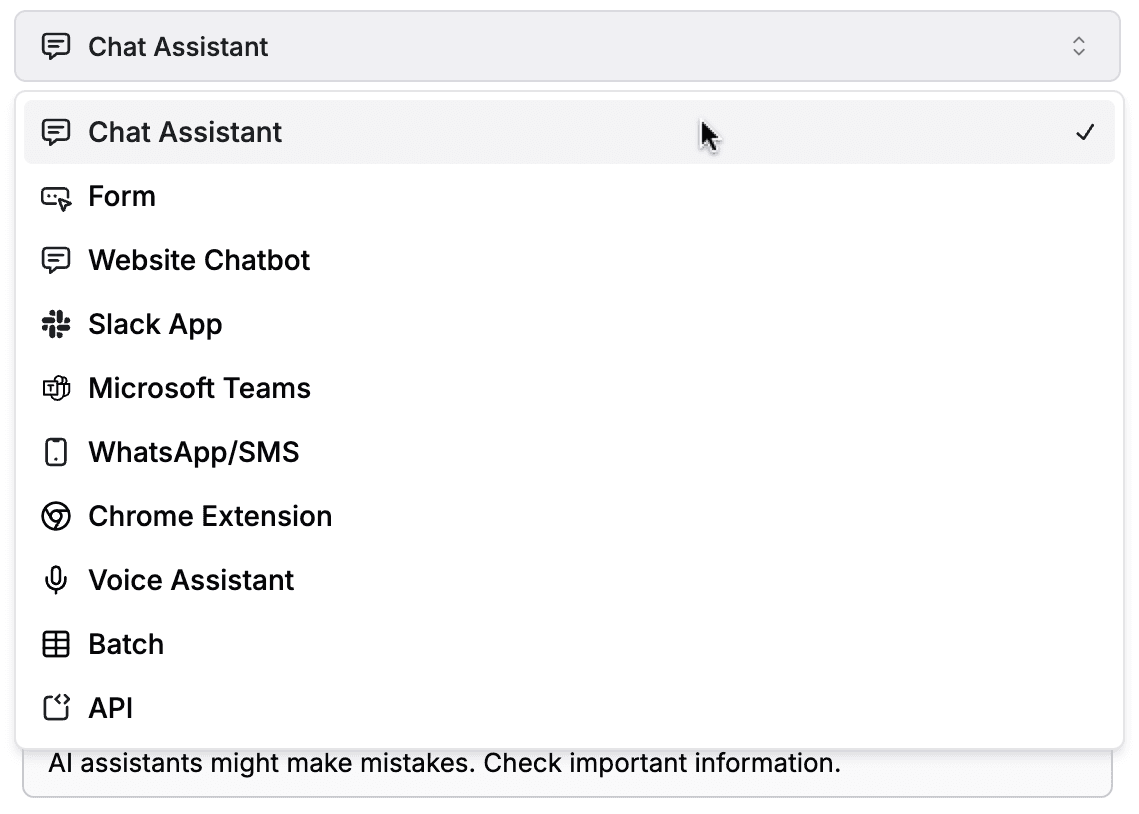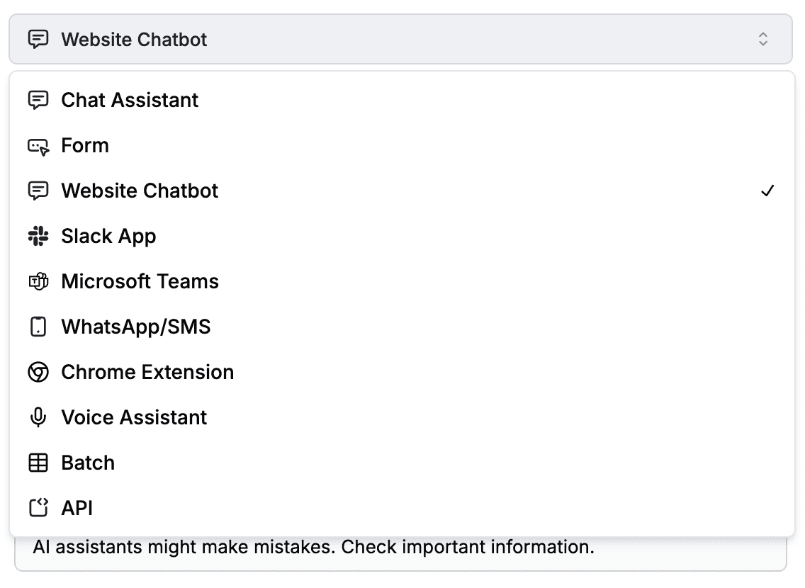 In StackAI, you can give your AI agent multiple user interfaces, based on how you want users to interface with the app.