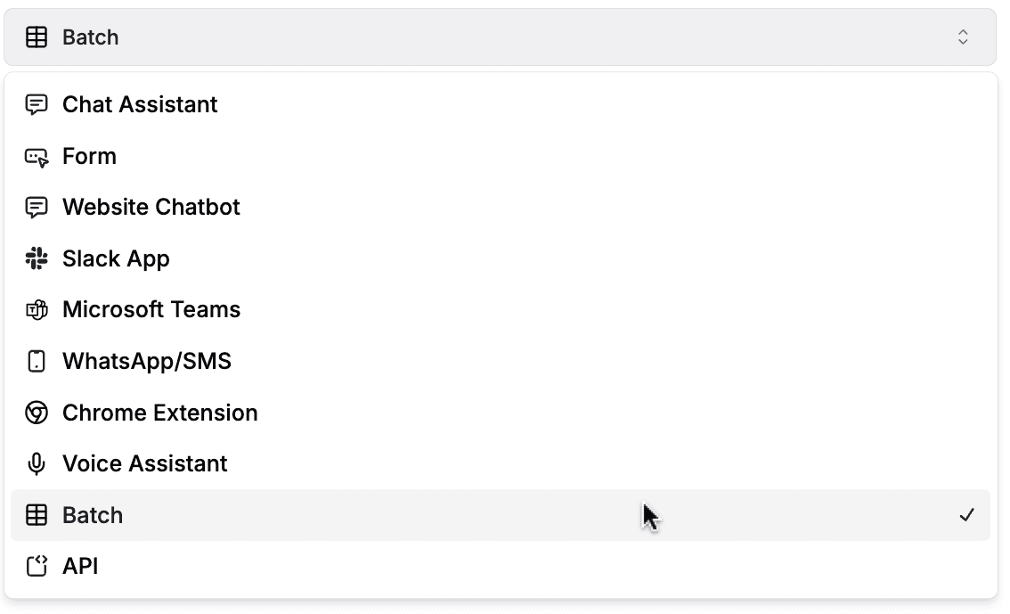 Now let’s consider a new type of user interface: batch. The batch interface allows you to run multiple instances of the AI agent all at once.